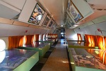 Die Passagierkabine der Caravelle ist mit Vitrinen ausgebaut, die die Geschichte dieses Passagierjets erzählt.