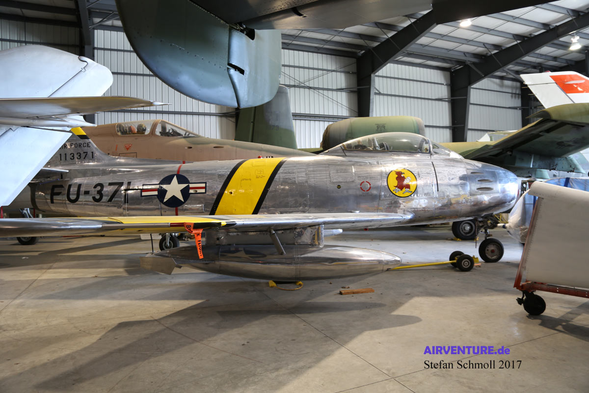 Auch das amerikanische Gegenstück zur Mig-15, die North-American F-86 Sabre befindet sich im großen Lager des Museums. Auch Typen wie Grumman F-14 und Fairchild A-10 sind derzeit aus Platzgründen eingelagert. |