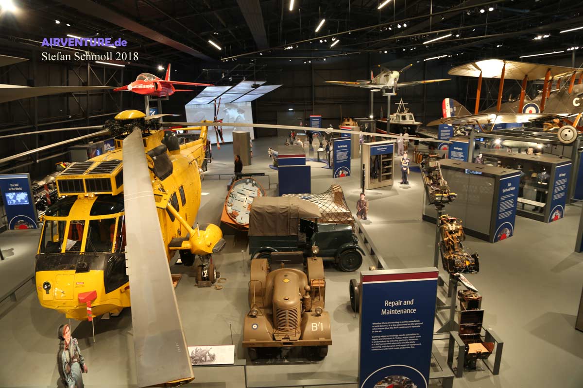 Aber auch der gute alte BAe Harrier hat hier ein würdiges Heim gefunden. Im Hintergrund das im Sommer 2018 gelieferte Cocpit einer Lockheed Hercules. Das ausgestellte Exemplar flog allerdings bei der amerikanischen Truppe.