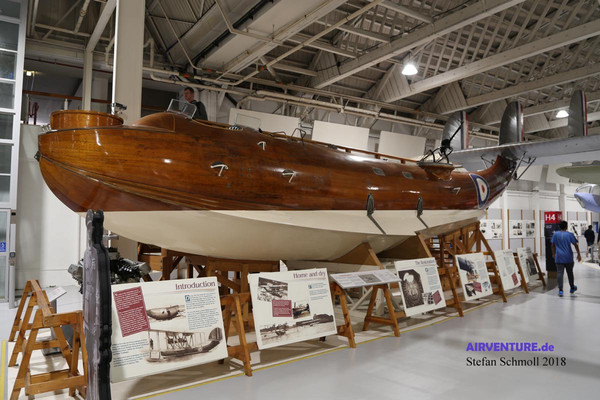Zwischen 1924 und 1934 wurden 83 Supermarine Southampton Doppeldeckerflugboote gebaut. Erhalten blieb dieser eine Rumpf, der vor einigen Jahren mit großem Aufwand von den Spezialisten des RAF Museums restauriert worden ist. |