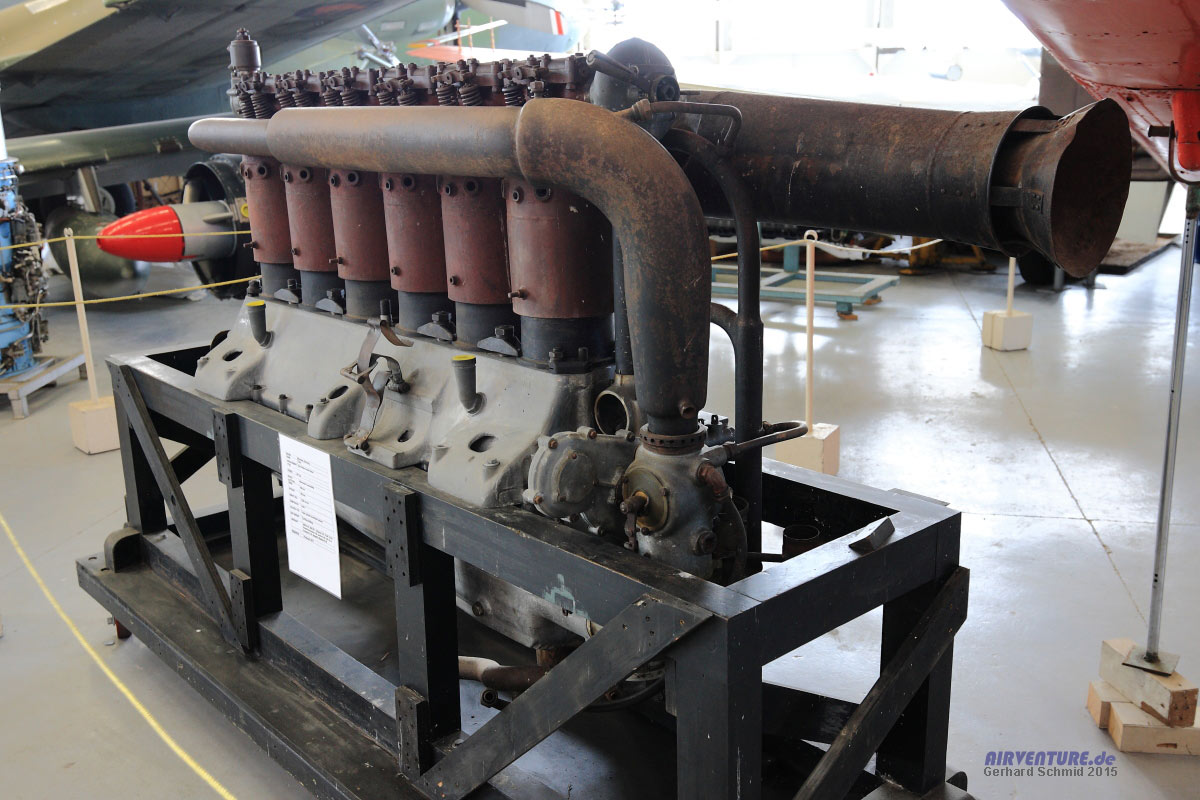 Ein recht seltenes Stück ist dieser Mercedes D.IVa Sechszylindermotor aus dem Jahr 1917, der in schwereren Flugzeugen wie AEG G.IV oder Albatros C.X und auch in Zeppelinen Verwendung fand. |