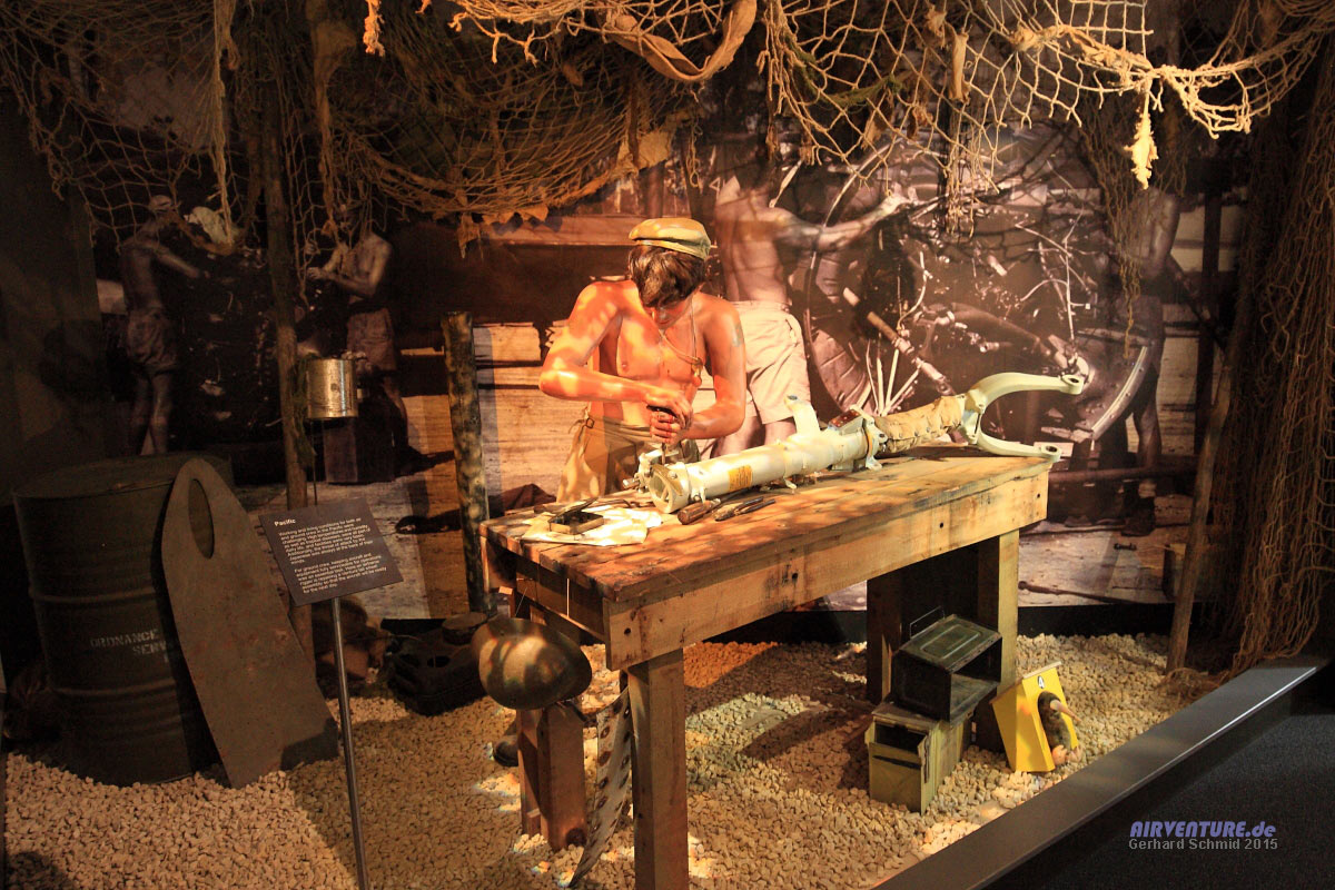 Lebensgroße Dioramen bieten Einblicke in das großteils improvisierte der Wartungsmannschaften, die mit minimaler Ausstattung die Flugzeuge einsatzbereit halten mussten. |