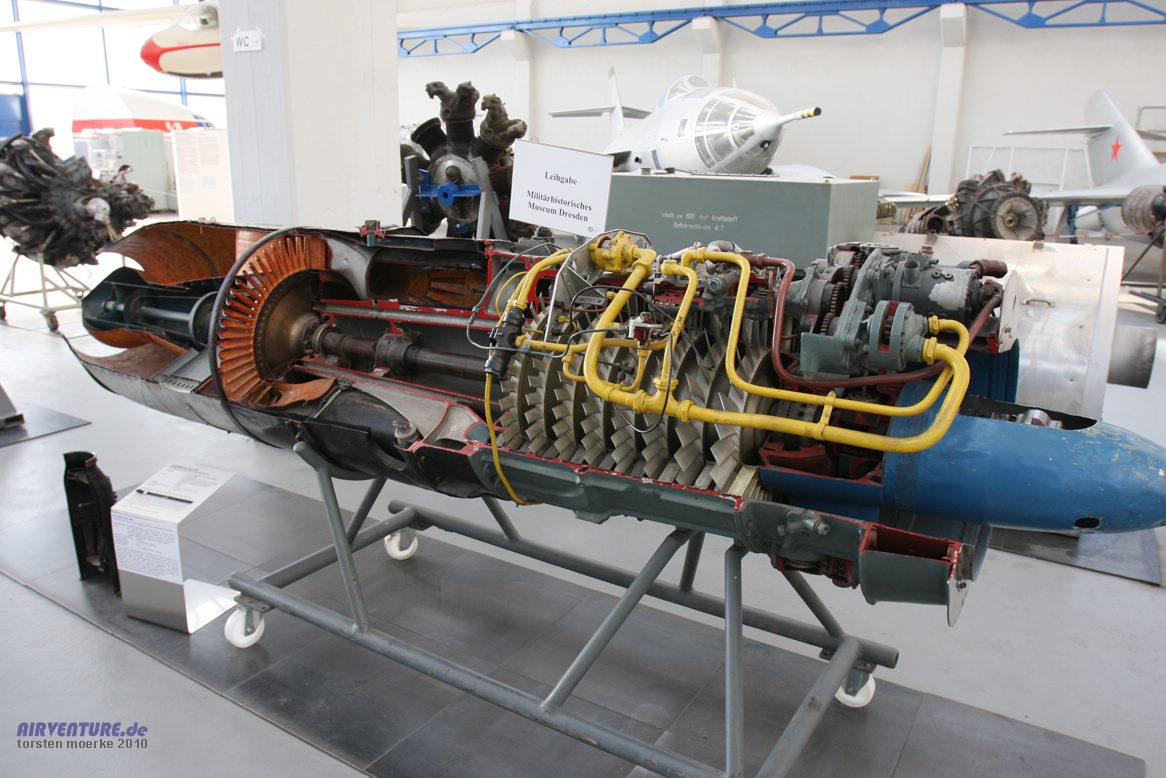 In der umfangreichen Triebwerkssammlung des Junkers Museums, darf das Jumo 004 natürlich nicht fehlen. Neben restaurierten Originalen werden auch Fundstücke aus Abstürzen gezeigt. |