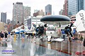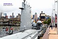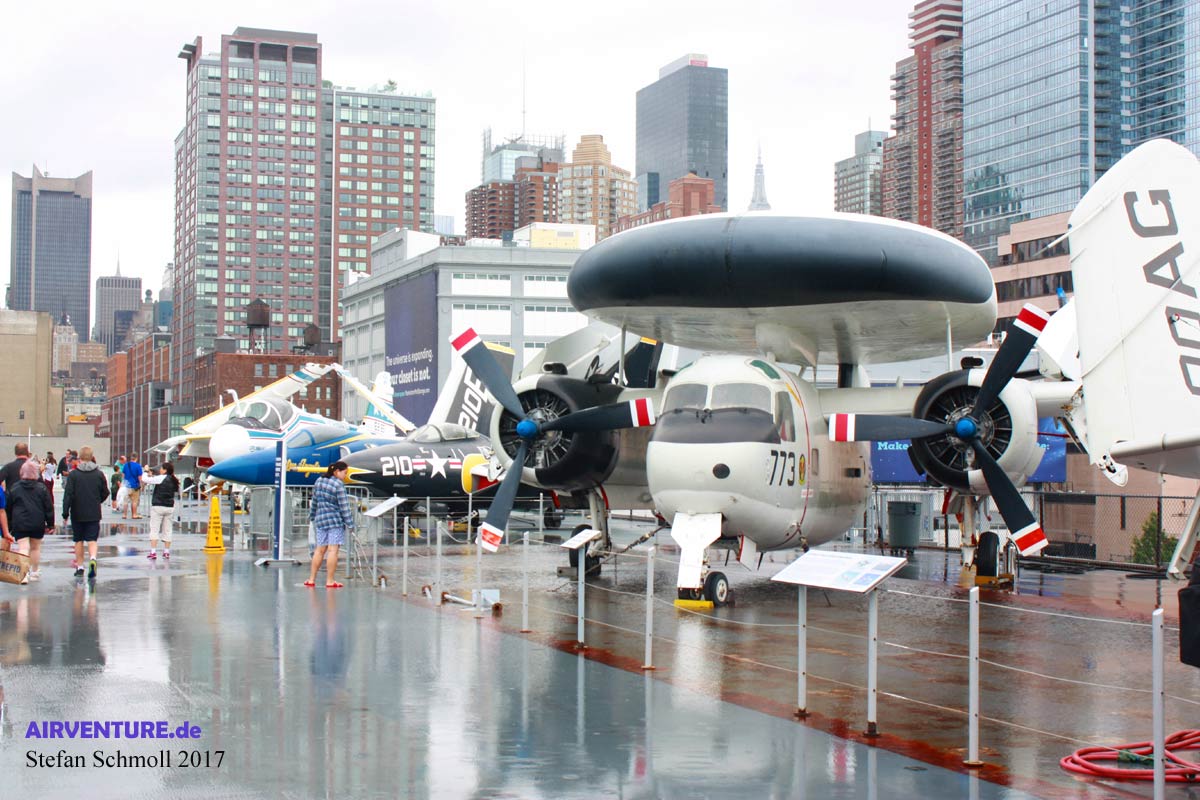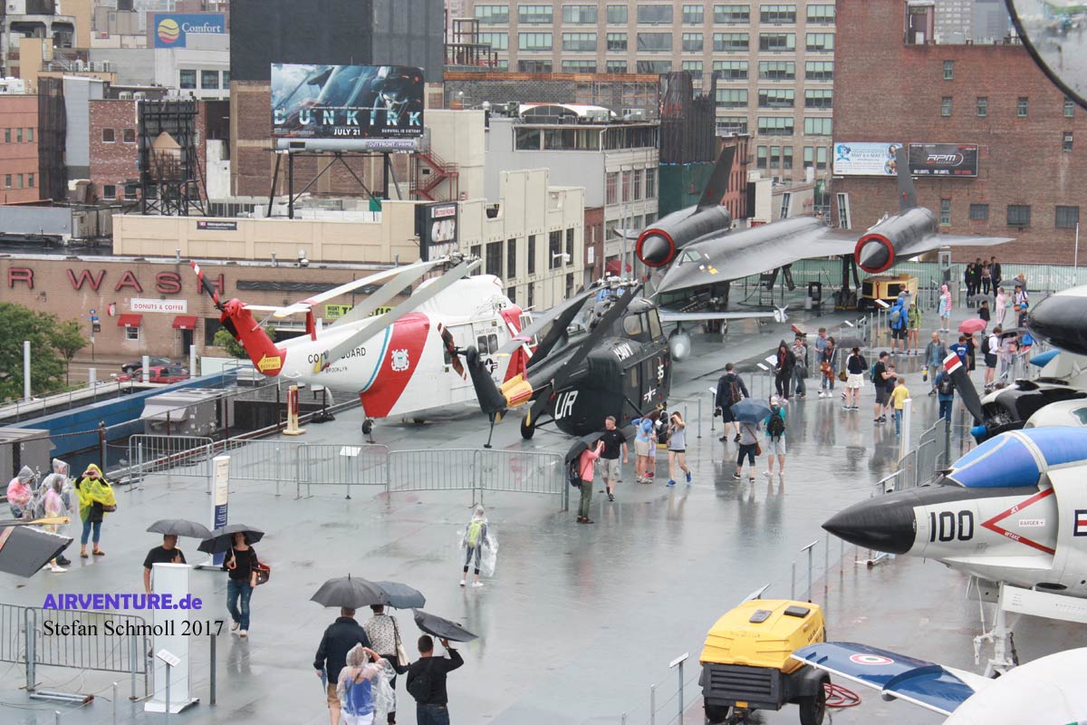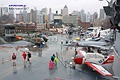 Von der Insel aus hat man einen guten Überblick über die auf dem Flugdeck ausgestellten Flugzeuge & Hubschrauber. Das Panorama mit den Wolkenkratzern im Hintergrund ist schon beeindruckend. |