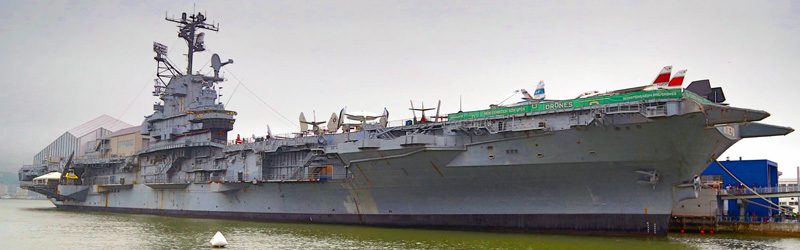 Während unseres Besuches war zu Beginn ein mehr als bescheidenes Wetter - aber zum Glück ist so ein Flugzeugträger Innen ja wasserdicht. |