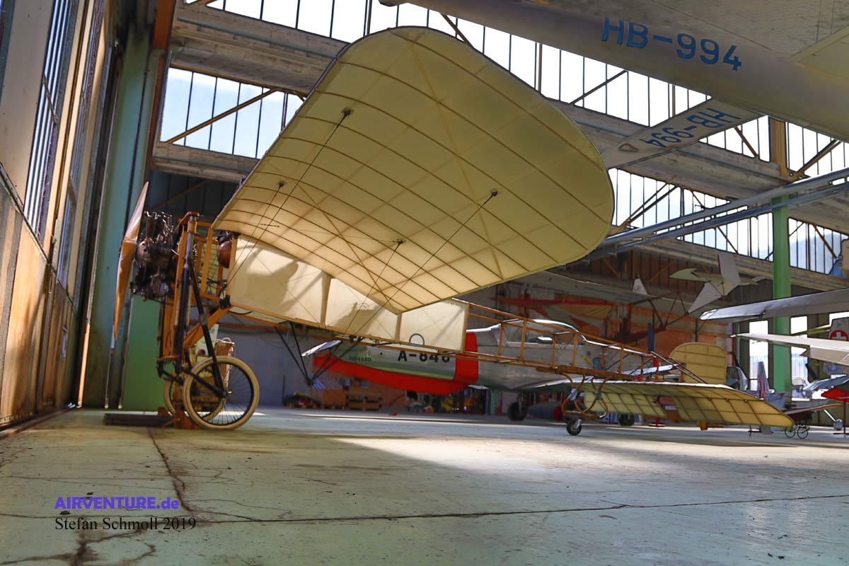 Hans Furrer baute in 15 Jahren diese Bleriot XI nach Plänen aus dem Jahr 1911 nach. Die HB-RCV besitzt einen originalen Anzani Motor und flog vor 20 Jahren erstmals. Seitdem ist ihr Besitzer mit der Maschine rund 60 mal in die Luft gegangen.