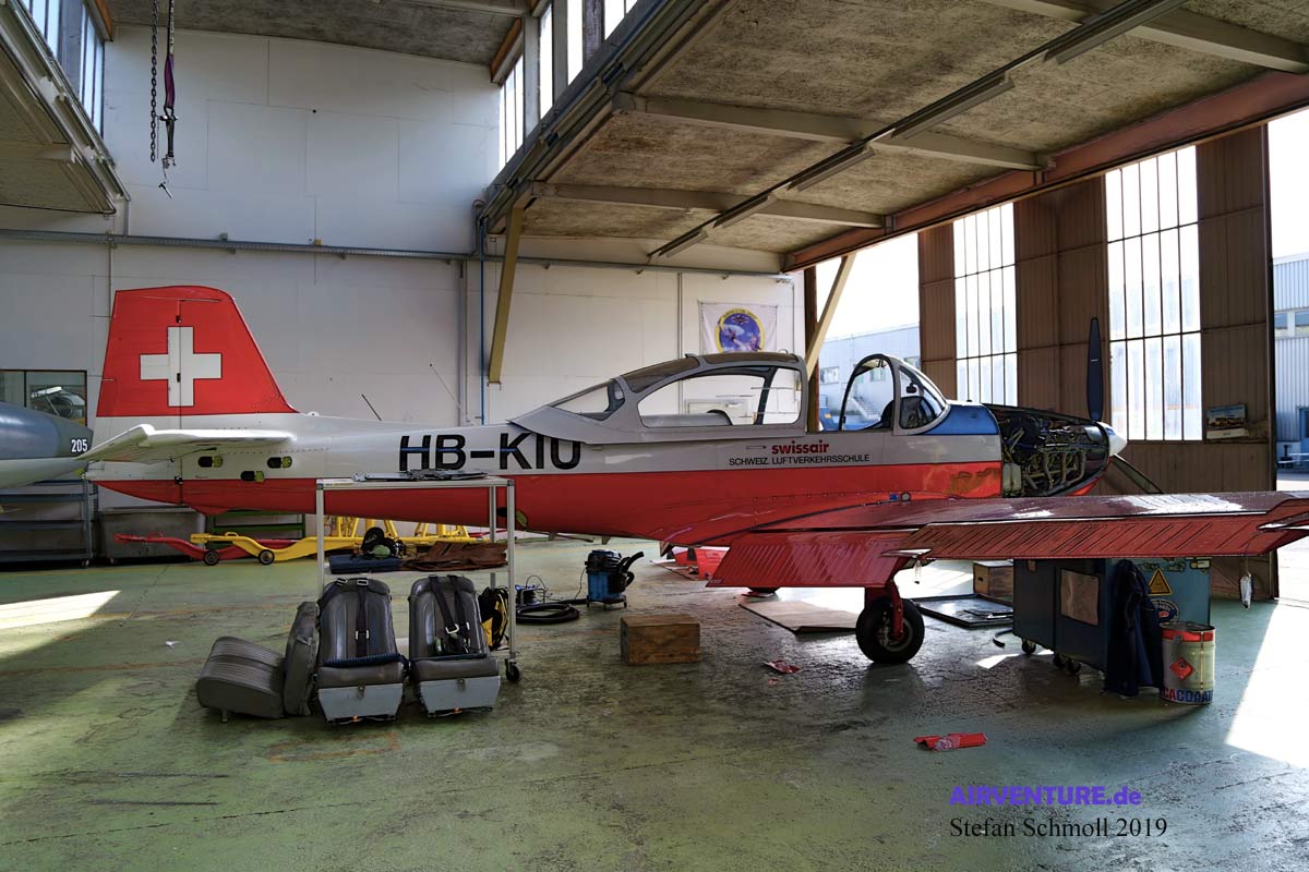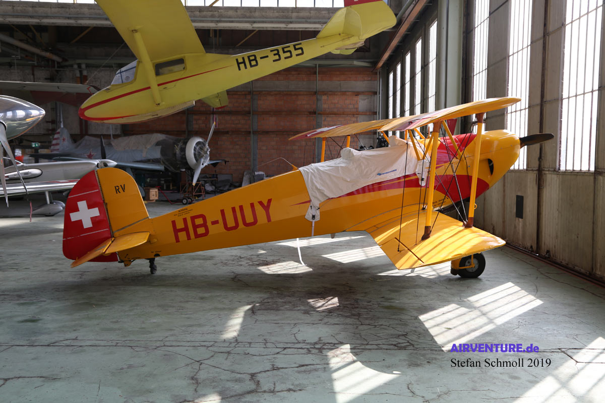 Selbstverständlich gehört auch einer der vielen noch erhaltenen Schweizer Bücker 131 Jungmann zur Sammlung. Dornier baute hier in Altenrhein rund 80 Exemplare für die Schweizer Luftwaffe in Lizenz. Viele erhielten später den Lycoming Boxermotor, welcher der HB-UUY eine komplett neue Nasenansicht verleiht.