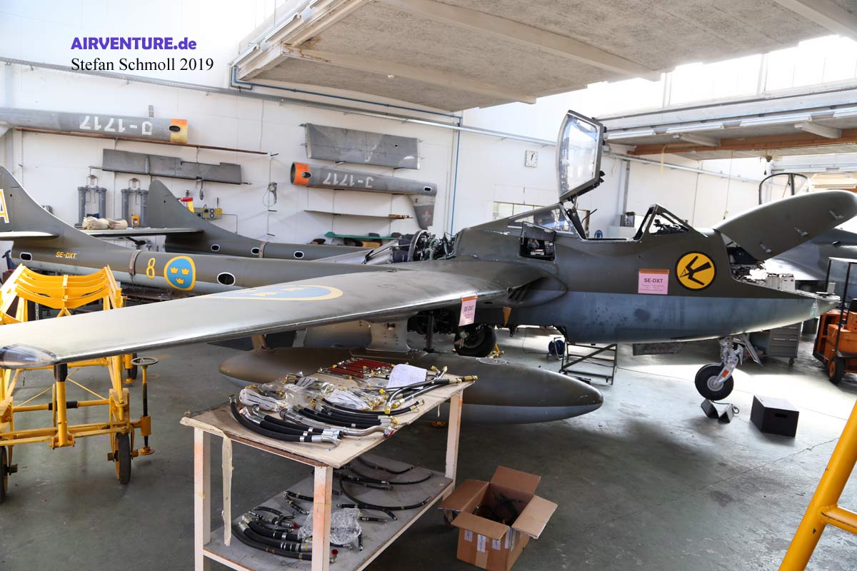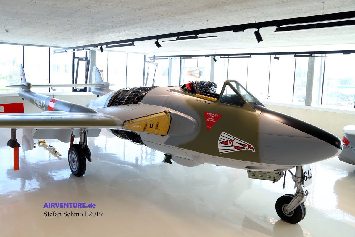 Fast alle heute noch fliegenden deHavilland Vampire & Venom stammen aus Schweizer Militärbeständen. Das FFA Museum präsentiert gleich ein halbes Dutzend der frühen Jets. Relativ neu ist die SE-DXT, welche in Schweden erworben worden ist. Sie flog früher als U-1212 in der Schweiz.