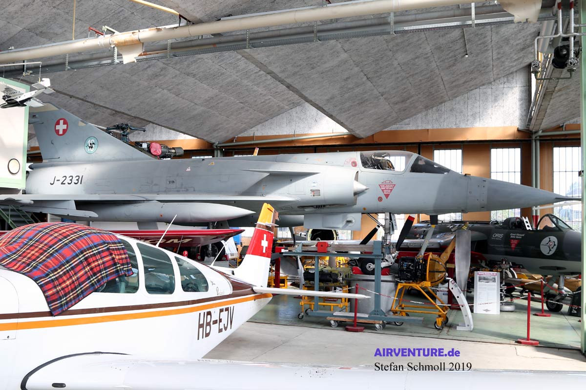 Das schnellste Flugzeug im Museum ist die Dassault Mirage IIIS J-2331. Die französischen Jagdflugzeuge wurden 1999 ausgemustert, wobei die Aufklärer-Version Mirage III RS bis 2003 im Einsatz blieb. Im Gegensatz zu Mustern wie Hunter und Vampire gingen die viel komplexeren Überschalljets natürlich nicht an zivile Halter, um weiter geflogen zu werden. |