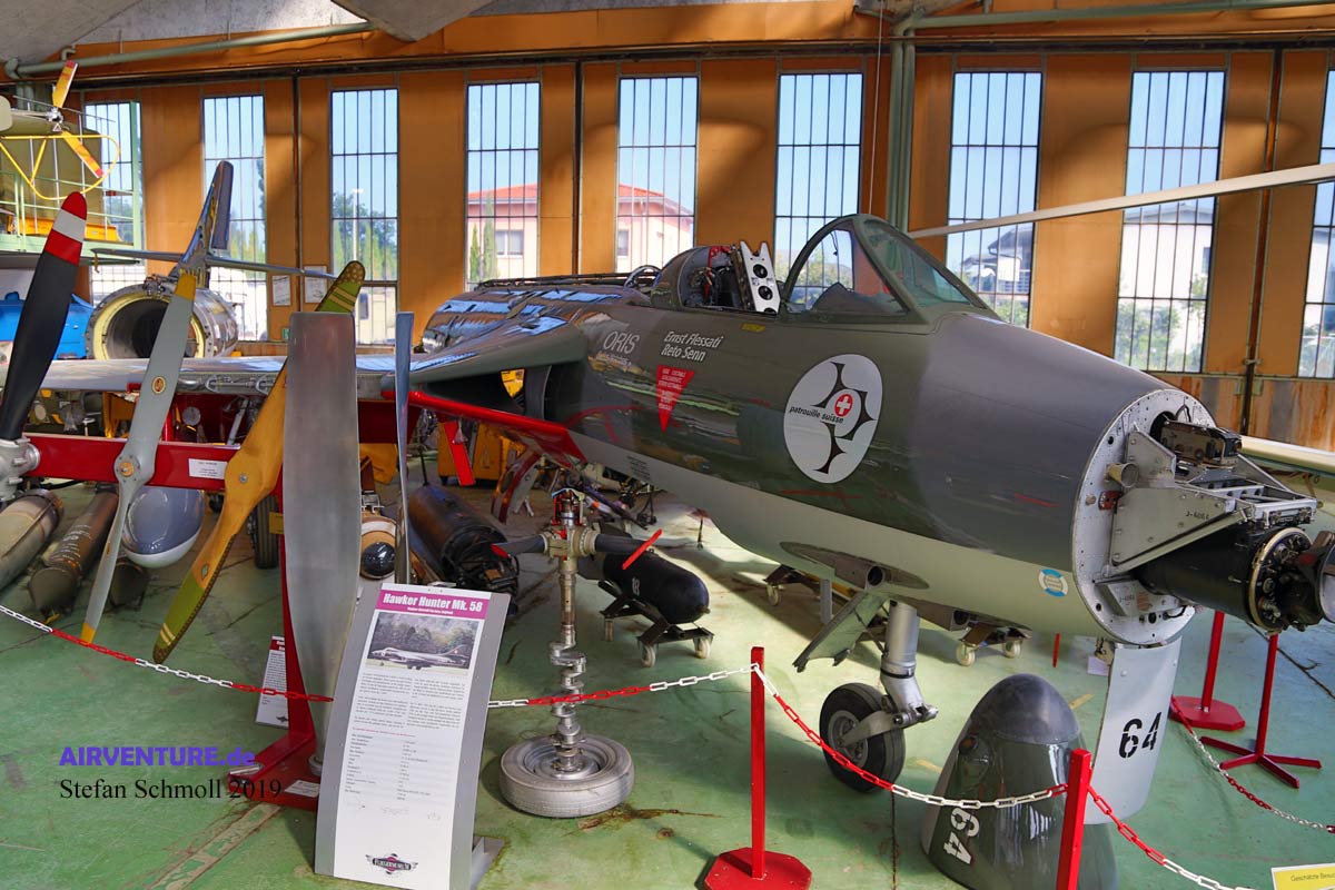 Die Hawker Hunter HB-RVQ ist eine weitere von insgesamt vier Exemplaren in der Sammlung. Sie flog als J-4064 bei der Patrouille Suisse. Ebenso ausgestellt sind HB-RVP (ex-J-4205) und HB-RVU (ex J-4086).