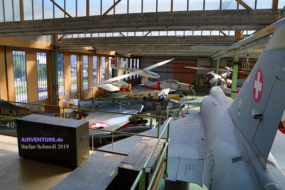 Ein Blick in die historische Halle des FFA Museum Altenrhein, in der vom Segelflugzeug bis zum Überschalljet eine große Bandbreite der Fliegerei zu besichtigen ist.