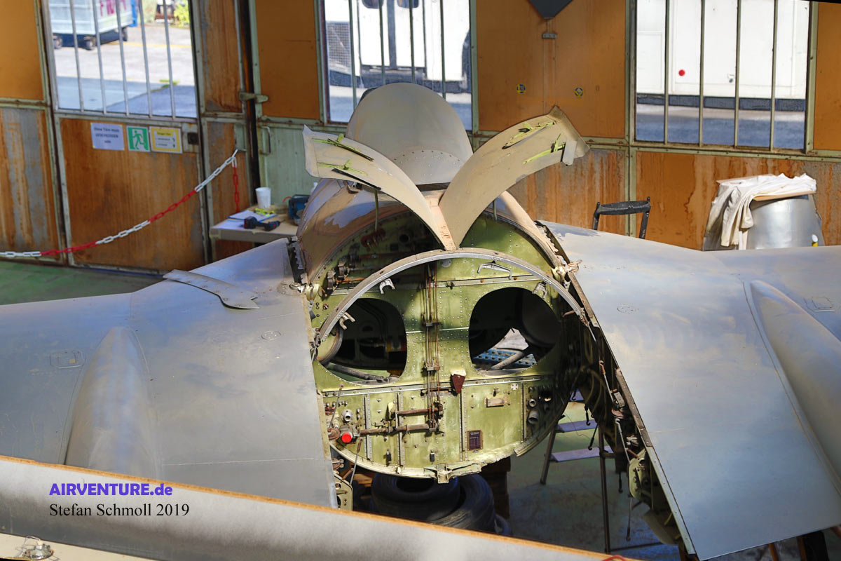 Draußen befindet sich die Zelle der DH.112 Venom FB50 J-1559. Ein trauriges Bild, wenn man an all die gut erhaltenen Maschinen im Museum denkt.