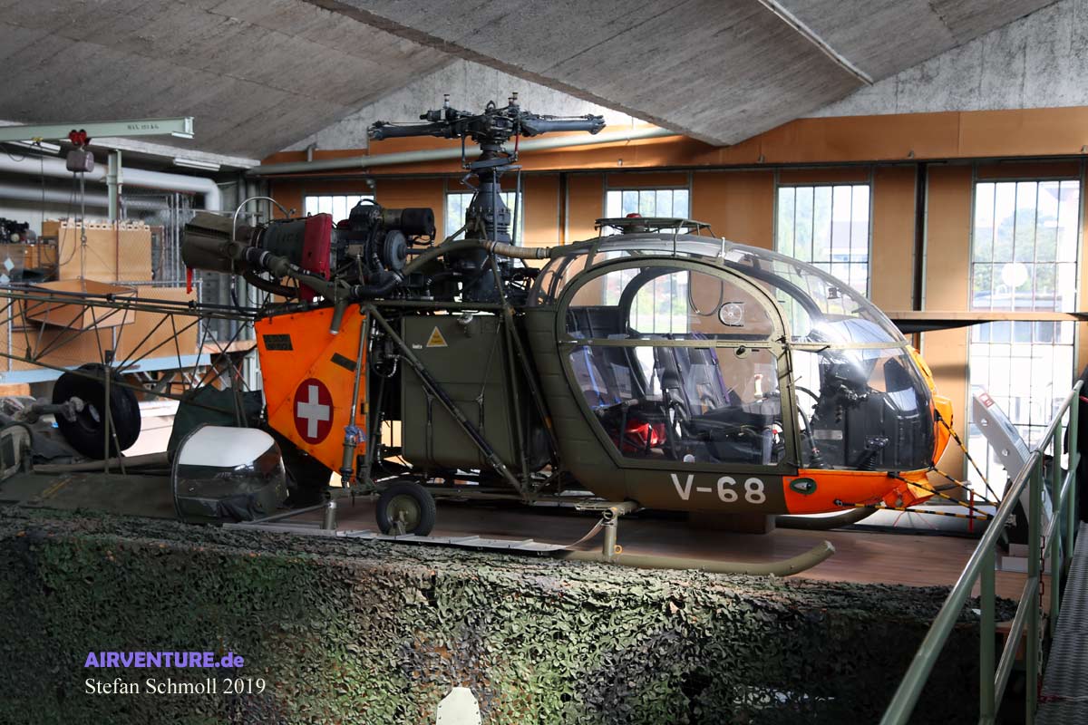 30 Sud-Est Alouette II wurden von der Schweizer Luftwaffe zwischen 1958 und 1992 eingesetzt. Neben der V-68 ist auch der Nachfolger, die Alouette III V-250 ausgestellt, welche bis 2010 als Muster im Einsatz war.