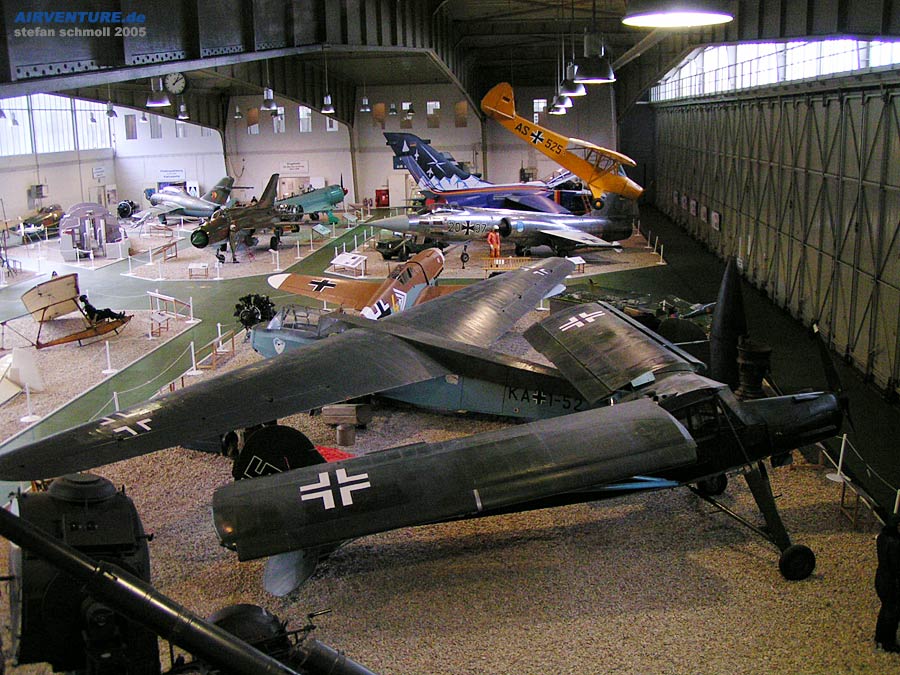 Ausstellungshalle des Museums. Hier sind VIER deutsche Luftwaffen unter einem Dach