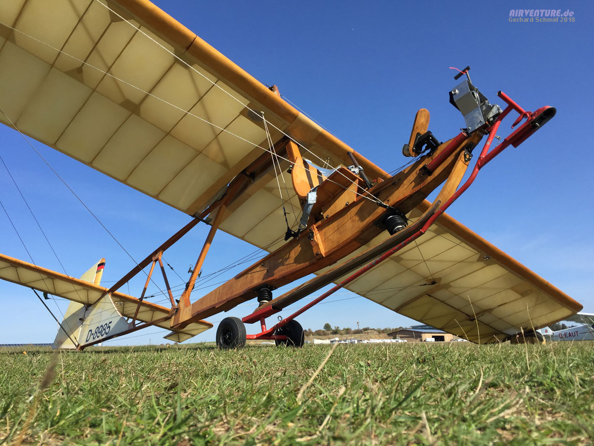 Eine ganz besondere Rarität ist diese Schempp-Hirth Gö-1 Wolf, das einzige flugfähige Original dieses Typs. Etwa 100 Stück wurden zwischen 1935 und 1940 von der Firma Sportflugzeugbau Göppingen Martin Schempp gebaut. |