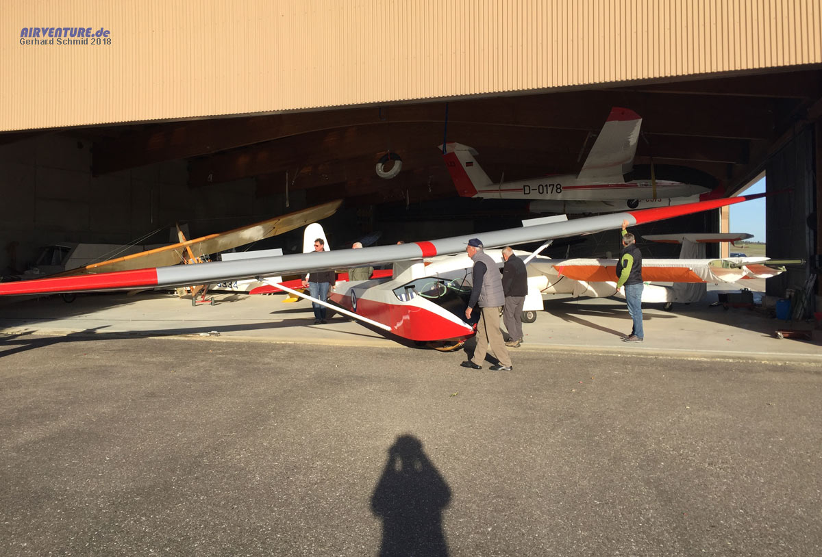 Mario Selss hat eingeladen und zahlreiche Segelflieger sind seinem Ruf gefolgt. Auch die weite Anreise aus der Schweiz konnte einige Teilnehmer nicht daran hindern, dem Treffen auf der Schwäbischen Alb beizuwohnen. Wer einmal an einer solchen Zusammenkunft teilgenommen hat, kann die Beweggründe verstehen. Die Leidenschaft für die liebevoll und aufwändig restaurierten und gepflegten historischen Flugzeuge aus Holz und Stahl verbindet. Hier sind alle gleich, der Student und der Professor, der Lehrling und der Industrielle. Man zieht am selben Strang - oder besser: Man schiebt am gleichen Flugzeug, mit dem einer - manchmal auch zwei - der Oldtimerfans sich wenig später in die Lüfte erheben wird, geschleppt von einer Motormaschine - oder wahlweise einer Seilwinde.