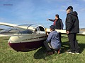 Der SG-38 Schulgleiter, auf dem tausende Piloten ihre ersten Luftsprunge erleben durften, stand nicht nur zum Anschauen da. Er wurde rege genutzt und so mancher Freudenschrei eines Piloten hallte von oben über den Flugplatz. |