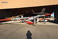 Inzwischen wird auch die schweizer Moswey III mit der Kennung HB-485 zusammengebaut. Drei Mann mit geübten Händen bringen dieses Flugzeug in einer halben Stunde aus dem Hänger an den Start. |