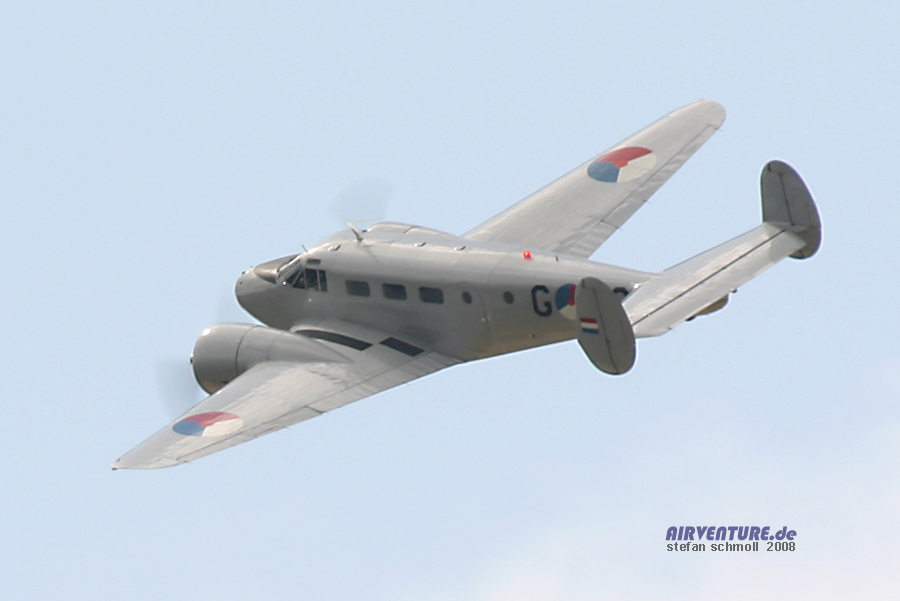Diese Beech 18 gehört zur historischen Staffel der niederländischen Luftwaffe. Aber das ist nicht der einzige Flugzeugtyp, der bei unseren Nachbarn aktiv gehalten wird: http://www.skhv.nl/frameset_en.html. Da könnte man in Deutschland glatt neidisch werden. So etwas wird es hier wohl niemals geben.
