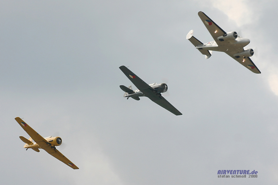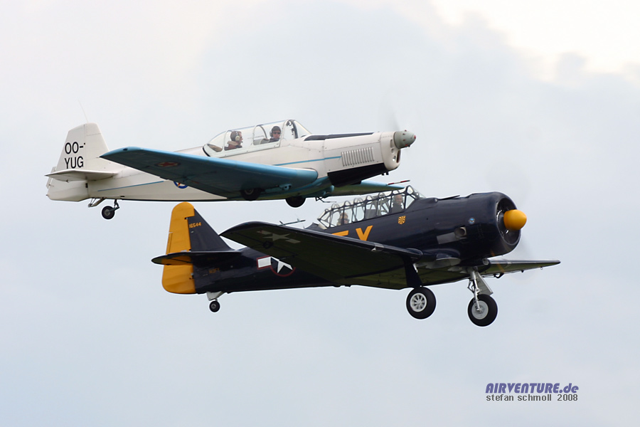 Eigentlich ein ungleiches Paar. Aber Zlin Trainer und Harvard haben in Weeze bei einem beeindruckenden Formationsflugprogramm wunderbar harmoniert. |