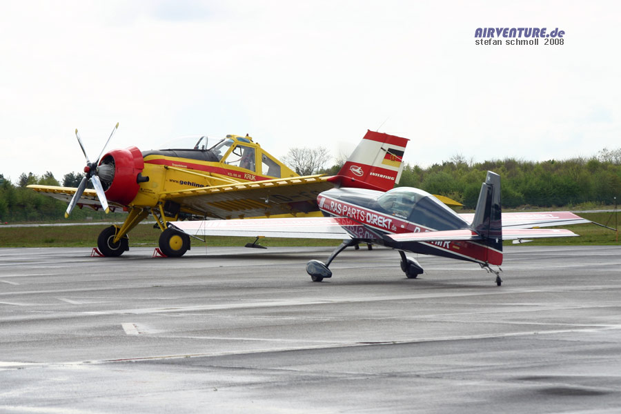 Zwei Stammgäste auf Veranstaltungen in ganz Deutschland sind Dieter Gehlings PZL Kruk und Mike Rottland in seiner Extra 300S Kunstflugmaschine. |