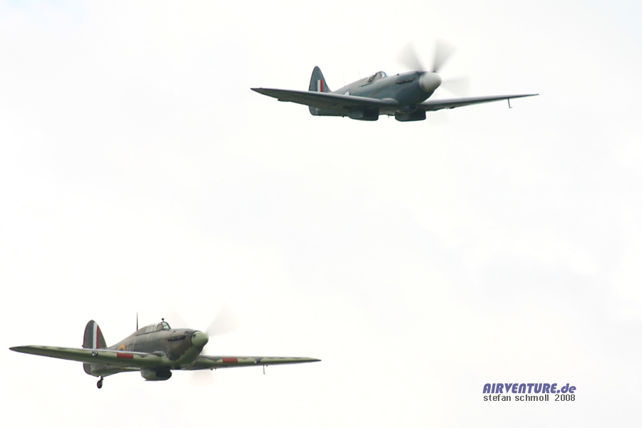 Kommen wir zur "Mutter aller Traditionsflüge". Dank der britischen Vergangenheit des Flugplatzes flog sogar der http://www.bbmf.co.uk mit Spitfire, Hurricane und Dakota ein. Auf dem europäischen Festland sieht man die wertvollen Flugzeuge leider nur sehr selten. Aber in England hat die Staffel in jedem Jahr hunderte Auftritte!