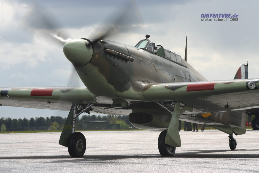 Der zweite Jagdflugzeugtyp des Battle of Britain Memorial Flight ist die Hawker Hurricane. Neben der hier gezeigten LF363 wird auch die PZ845 eingesetzt. Auch wenn die Spitfire Heute das bekanntere Flugzeug ist, so wurde England 1940 doch eigentlich in erster Linie von Hurricane Jägern verteidigt.
