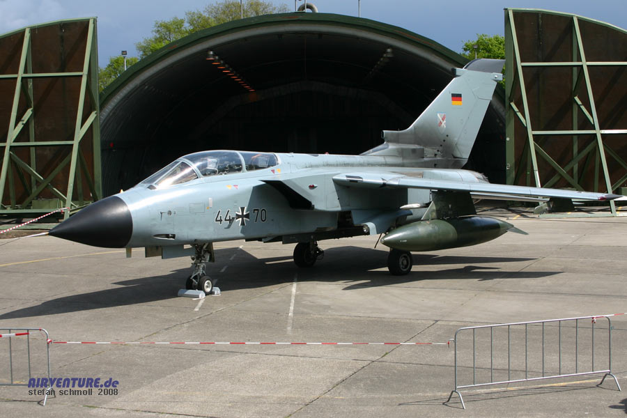 Zum Eurofighter hat es bei den Deutschen leider nicht gereicht, aber auch der Tornado aus Nörvenich war eine willkommene Bereicherung der statischen Ausstellung. Alle Militärmaschinen haben natürlich stilecht in den Sheltern des ehemaligen Stützpunktes genächtigt. |