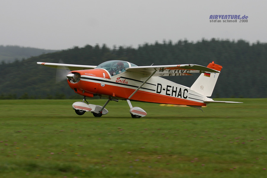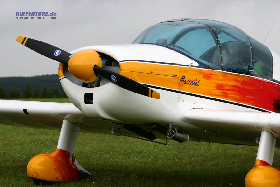 In den sechziger und siebziger Jahren beherrschten eindeutig Sportflugzeuge aus dem Hause Cessna und Piper die Fliegerszene in Deutschland. Da waren die Knickflügler der französischen Firma Jodel echte Raritäten. Die hier gezeigte Jodel D.150 Mascaret ist auf dem nahe gelegenen Flugplatz Dahlemer-Binz beheimatet. |