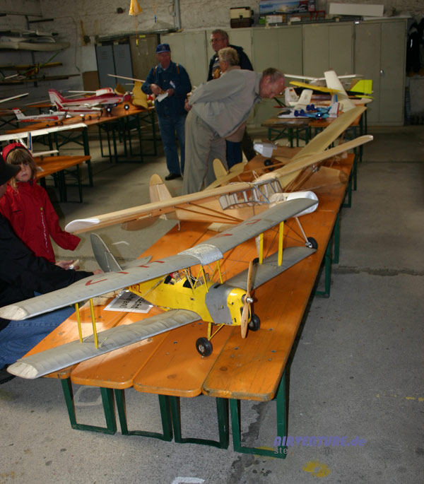Der große Fieseler Storch von Dirk Bende konnte wegen technischer Probleme leider nicht nach Wershofen kommen. Aber zumindest als Modell war er neben zahlreichen anderen Flugzeugtypen in der Halle vertreten. |