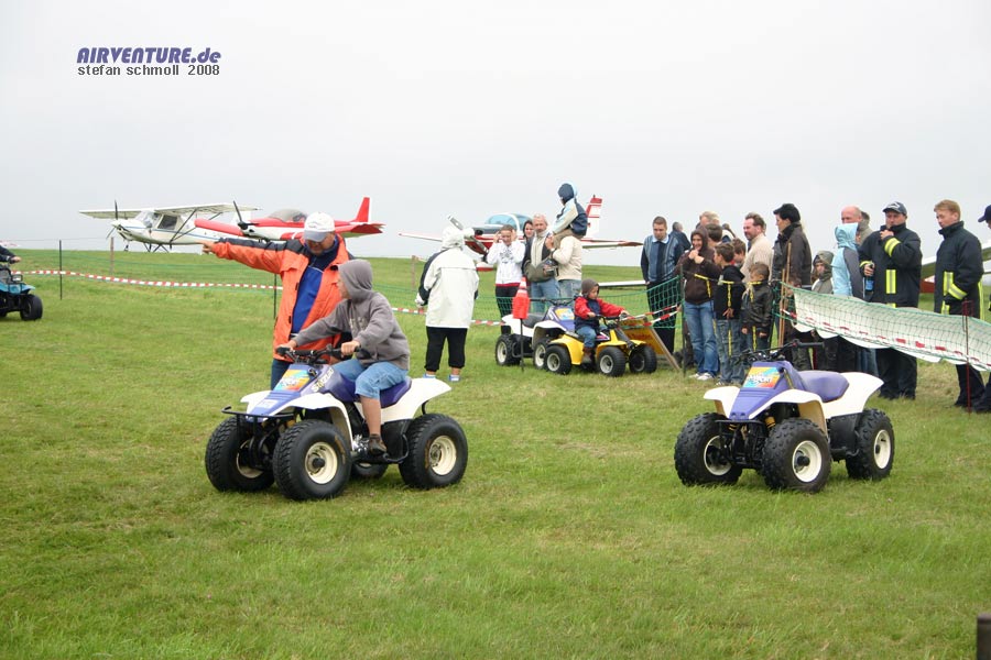 Seit einigen Jahren finden Quads auch in Deutschland mehr und mehr Anhänger. Gerade die jüngeren Besucher fuhren in dem abgesteckten Parcours ihre Runden, wenn in der Luft einmal Pause angesagt war. |