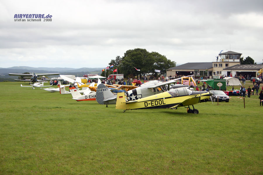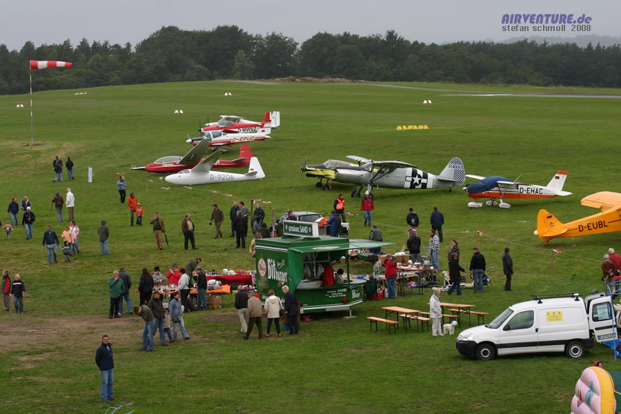 Der leere Eindruck täuscht etwas. Am 1. Septemberwochenende haben trotz des wirklich schlechten Wetters 5000 Besucher den Weg auf das Segelfluggelände Wershofen in der Nähe des Nürburgrings gefunden. Bei 15 Grad Celsius, Regenschauern und heftigem Wind haben natürlich einige der angekündigten Programmpunkte nicht stattfinden können.