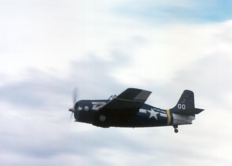 Grumman FM-2 Wildcat an, welche die beiden deutschen Jäger nach heftigem Luftkampf