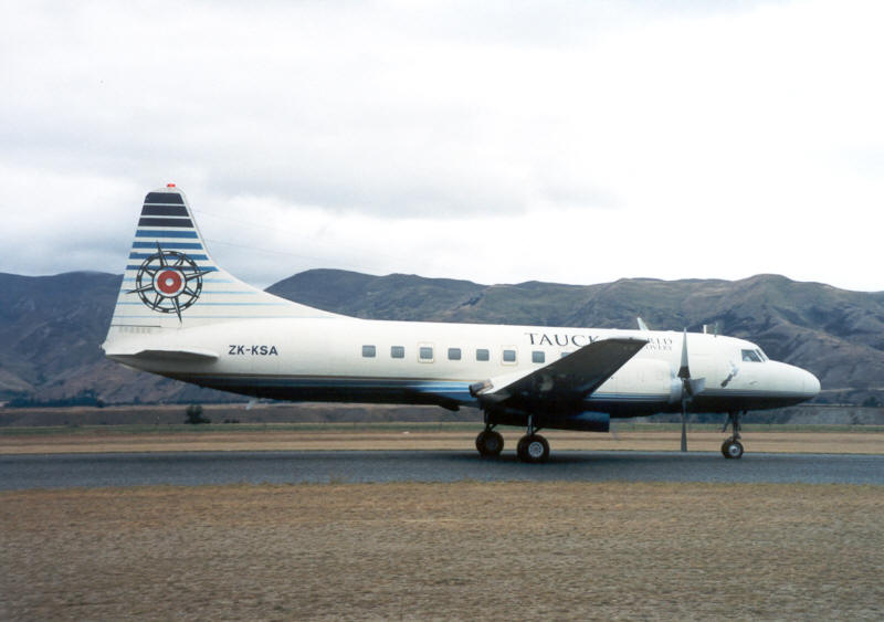 Zu den besonders interessanten Flugzeugen , die Besucher per Charterflug zur Warbirds over Wanaka Airshow 2002 brachten, zählt auch diese Convair. Die berühmten Convair Metropolitan Airliner aus den fünfziger Jahren hatten ursprünglich Sternmotoren, aber viele davon wurden später auf Turboprop-Triebwerke umgerüstet. Auch dies ist eine solche Turboprop-Convair mit der neuen Bezeichnung Convair 580. Obwohl es nicht draufsteht gehört übrigens auch diese Convair 580 zur Flotte der Neuseeländischen Fluggesellschft Pionair, von der auch zwei Dakotas Passagiere im Charterflug zur Airshow gebracht haben (siehe auch Teil 2 des Berichts).