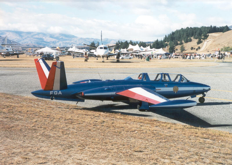 Fouga Magister Ein weiterer historischer Jet im Flugprogramm von Wanaka war diese wunderschöne Fouga Magister. Das Flugzeug trägt den Anstrich des berühmten französischen Kunstflugteams "Patrouille de France", welches lange Jahre mit der Fouga Magister ausgerüstet war.