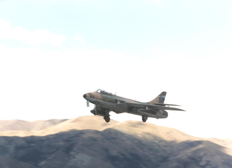 Hunter Immer wieder sehens- und hörenswert sind natürlich die sehr eindrucksvollen Vorführungen mit der Hawker Hunter! Während die Vampires und die Fouga Magister ihre Vorführungen vom Wanaka Airport aus flogen und daher vorher und nachher auch am Boden bewundert werden konnten, ist die Landebahn des Wanaka Airport für die große Hawker Hunter zu kurz. Daher musste diese Maschine für ihre Vorführungen in Wanaka von einem anderen Flughafen aus operieren. Hier ist die Hawker Hunter bei einem tiefen Überflug mit