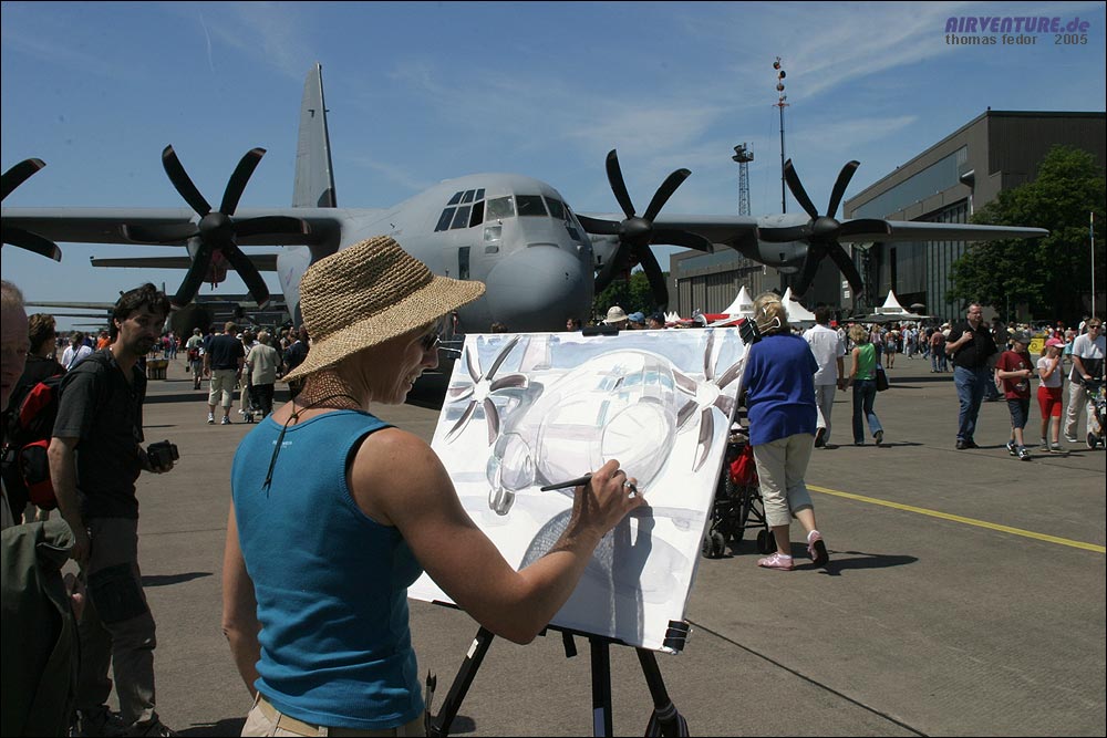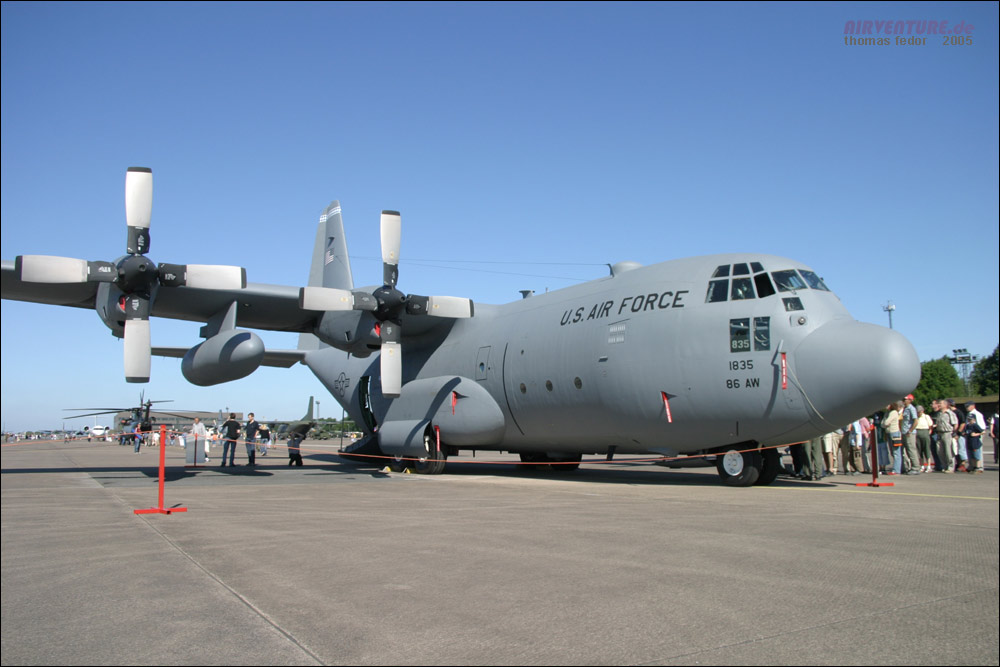 Man mußte sich nicht die Nase platt drücken. Es gab in Wunstorf reichlich Flugzeuge, die man auch innen besichtigen durfte. Auch diesen CH-53. Diese Bilder entstanden früh am Morgen. Der Flugplatz sollte sich im Laufe des Tages noch reichlich füllen. Hier eine Hercules der USAF.