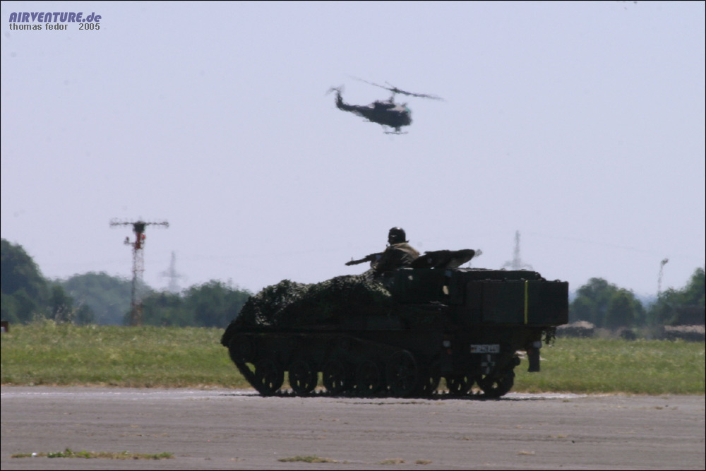 Unter dem Einsatz von Rauchgranaten und Übungsmunition wurden verschiedene Szenarien durchgespielt. Mit Hilfe des Bell UH-1D erfolgten unter anderem Luftlandeeinsätze. |