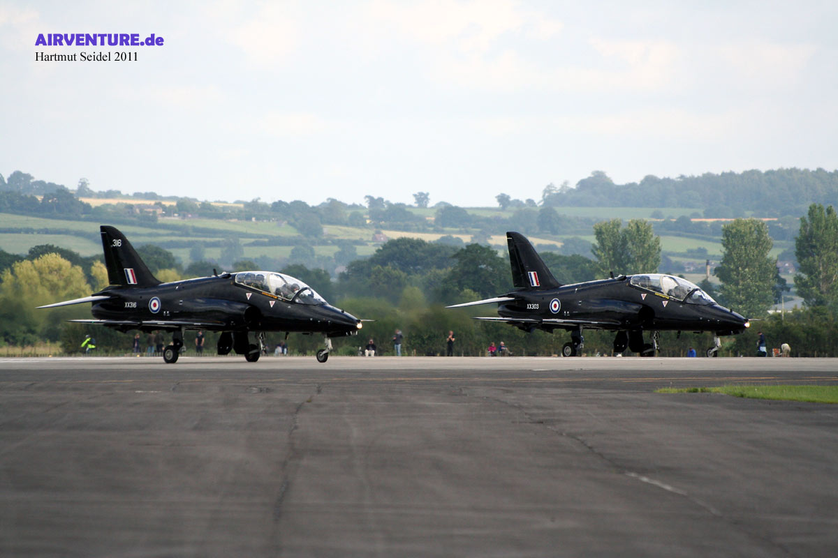 Neben den Einsatzdemonstrationen der Royal Navy und der Royal Air Force war beim International Air Day 2011 auch eine eindrucksvolle Angriffsdemonstration der französischen Marineflieger zu sehen. Die "Aéronavale" zeigte einen simulierten Luftangriff auf den Fliegerhorst mit Maschinen des Typs Rafale M und Super Etendard. |