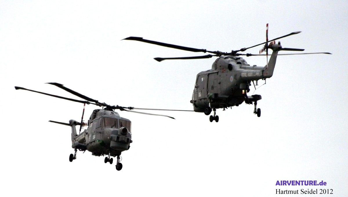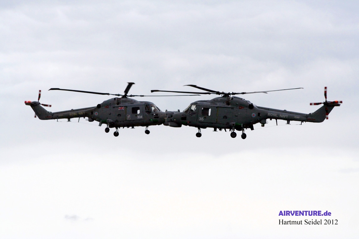 Mit dem auf der Basis Yeovilton stationierten "Black Cats" Royal Navy Helicopter Display Team war auch im Air Day Flugprogramm 2012 wieder eindrucksvoller Hubschrauber-Formationskunstflug in zum Teil sehr engen Formationen zu sehen. |