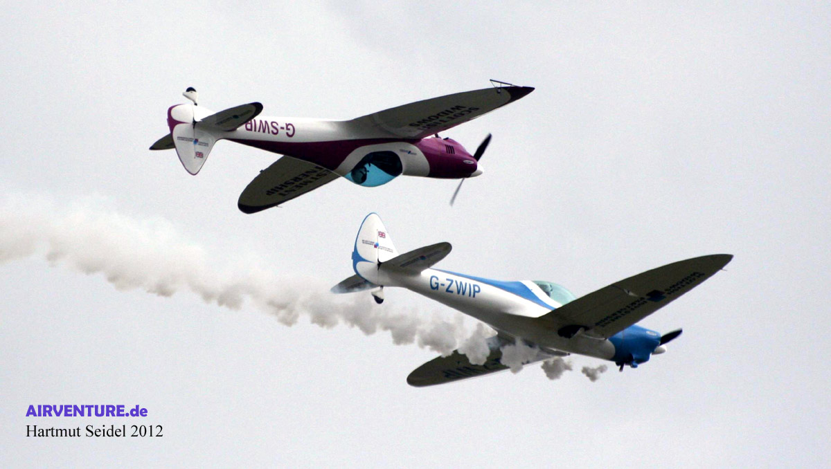 Neben Formationskunstflug mit Jets und Hubschraubern gab es im Flying Display des RNAS Yeovilton International Air Day 2012 mit dem "SWIP Team" auch Formationskunstflug mit zwei leichten Propellerflugzeugen zu sehen. |