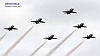 Die Saudi Hawks zeigen ihre Vorführungen mit sechs Maschinen vom Typ British Aerospace Hawk, sind also mit dem gleichen Flugzeugtyp wie die Red Arrows ausgerüstet. |