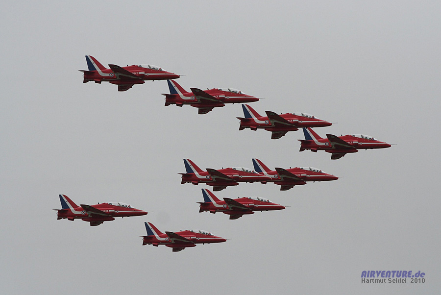 Auch das Red Arrows Kunstflugteam der Royal Air Force konnte wegen des ausserordentlich schlechten Wetters keine richtige Vorführung fliegen und musste sich leider auf einige wenige Formations-Vorbeiflüge beschränken.